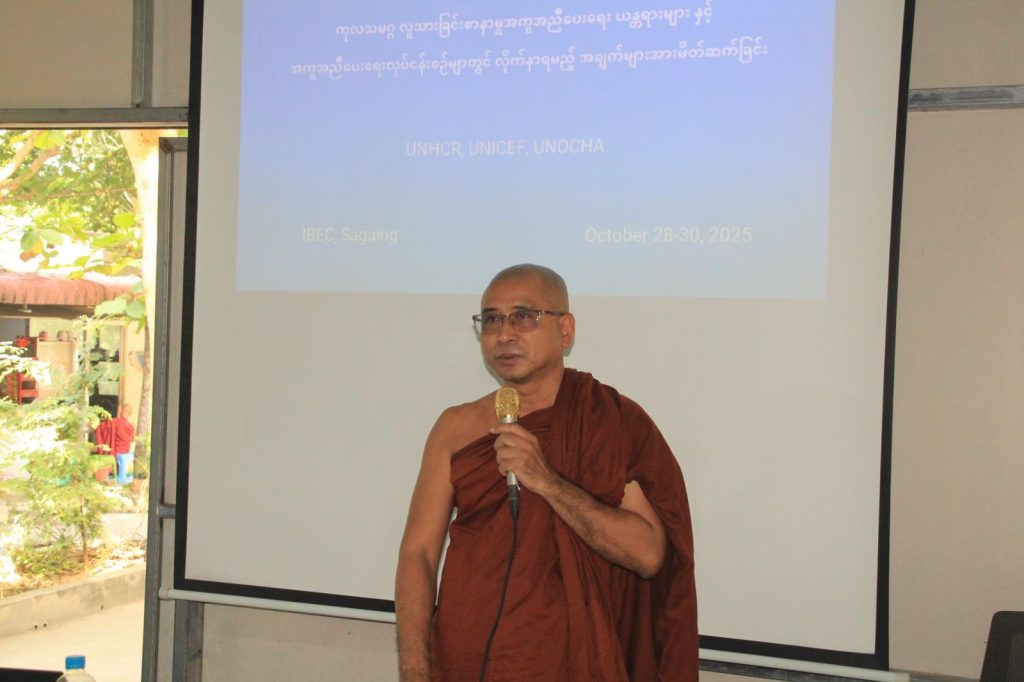The IBEC Buddhist University, in partnership with UNICEF, UNHCR, and UNOCHA, has inaugurated a three-day Interfaith Training on Humanitarian Assistance under the theme “Awareness of Humanitarian Assistance.” The training officially commenced today, October 28, 2025, at 9:00 AM, at the Department of Religious Studies, IBEC Buddhist University, located in southern Sagaing.